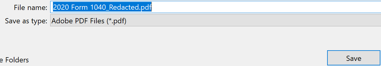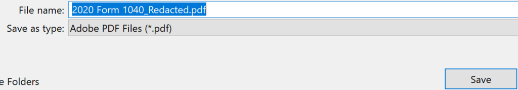 Adobe adds the suffix “_Redacted” to the filename and prompts you to save the document.