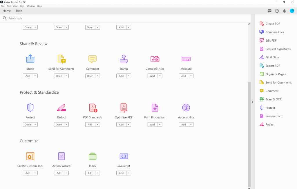which can be found in the panel to the right of your PDF document or in the Tools tab